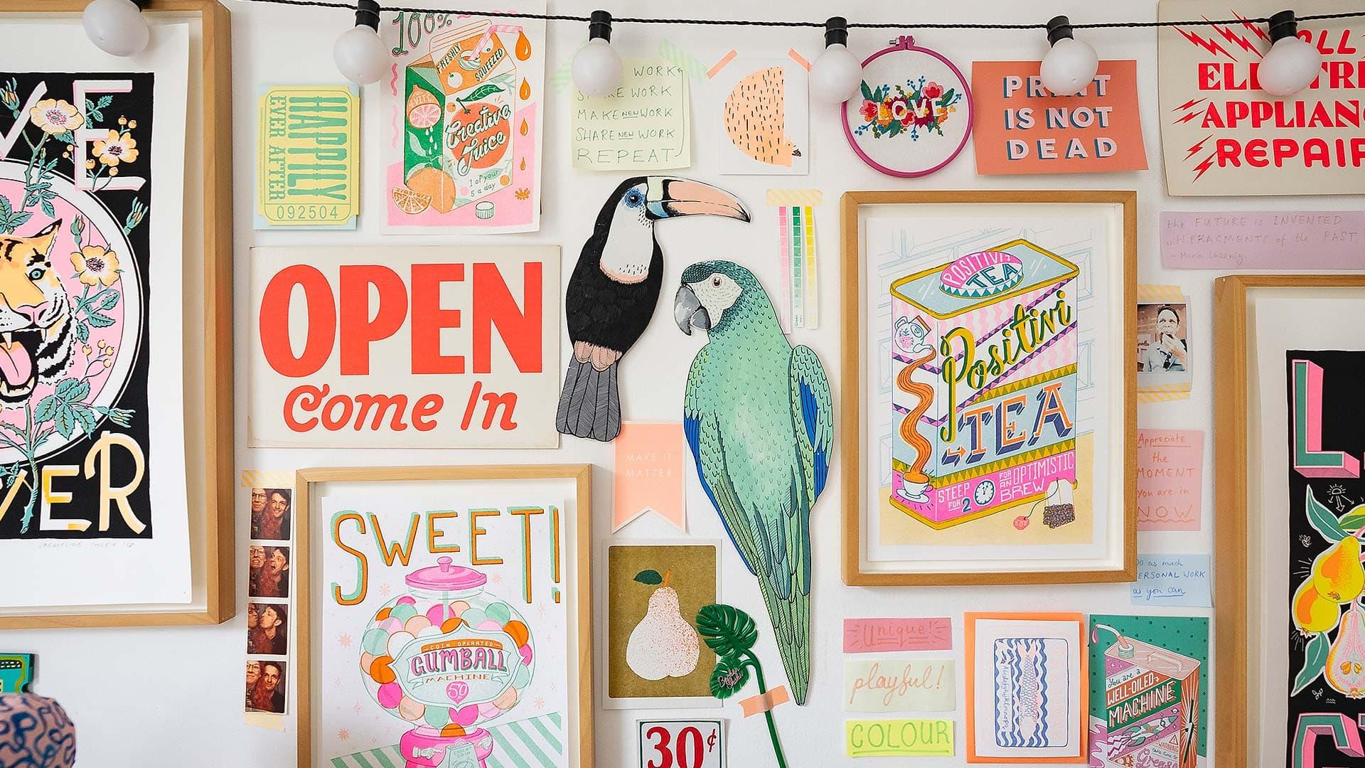 Inspired by mid-century design, vintage hand-drawn ads and typography, Jacqueline keeps her studio filled with a mad mix of uplifting pastel-hued ephemera, setting the tone for her playful illustrations.