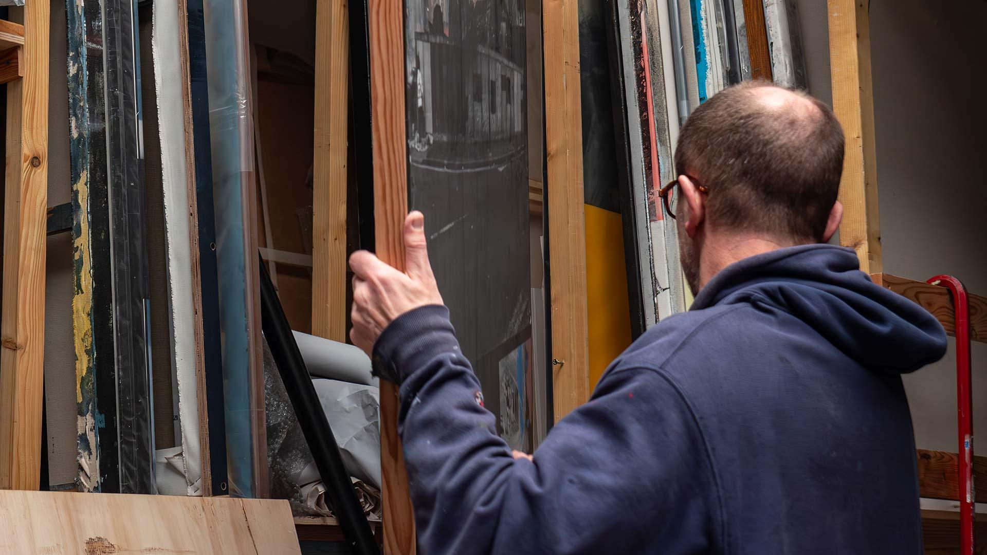 "Because I'm always on the look-out... there's times when I think there's no point in painting because the paintings, they're already made. Like the stuff like this. All these marks, the gestures, it's all already here."