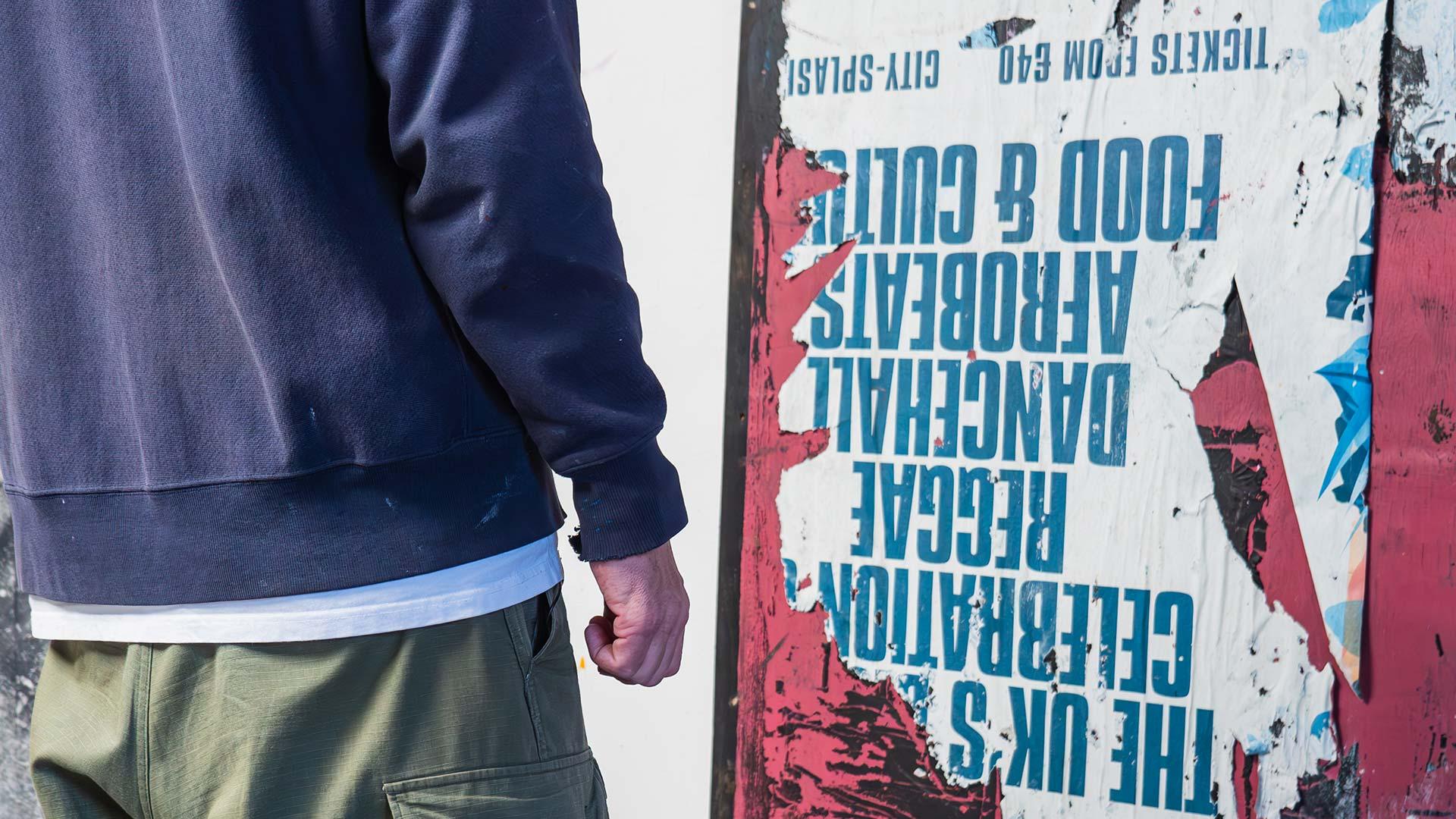 "I see it as a painting already. As soon as I see the small image like stuck to the street or street furniture, lampposts, in between shops, just anywhere. Whether it's sort of weathered leftovers and bits of glue and stickers. Straight away I see it as a formal composition of painting."
