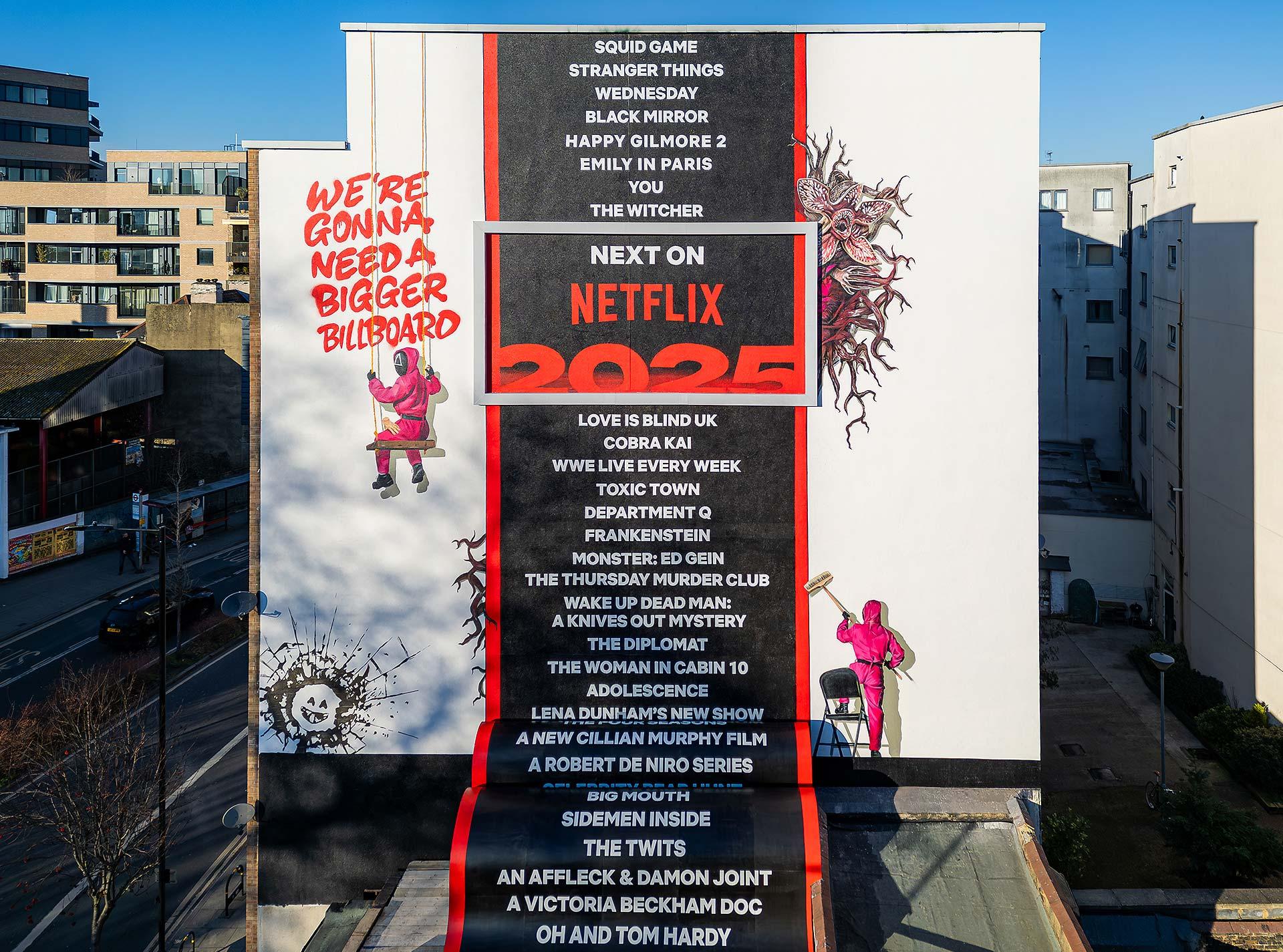 Netflix commissioned us to create a show-stopping billboard as part of its 'Next on Netflix’ 2025 campaign, highlighting a packed slate of shows including final seasons of Stranger Things and Squid Game, to Adolescence. Our in-house team were tasked to develop a custom-design featuring a striking 3D element that would stop people in their tracks.