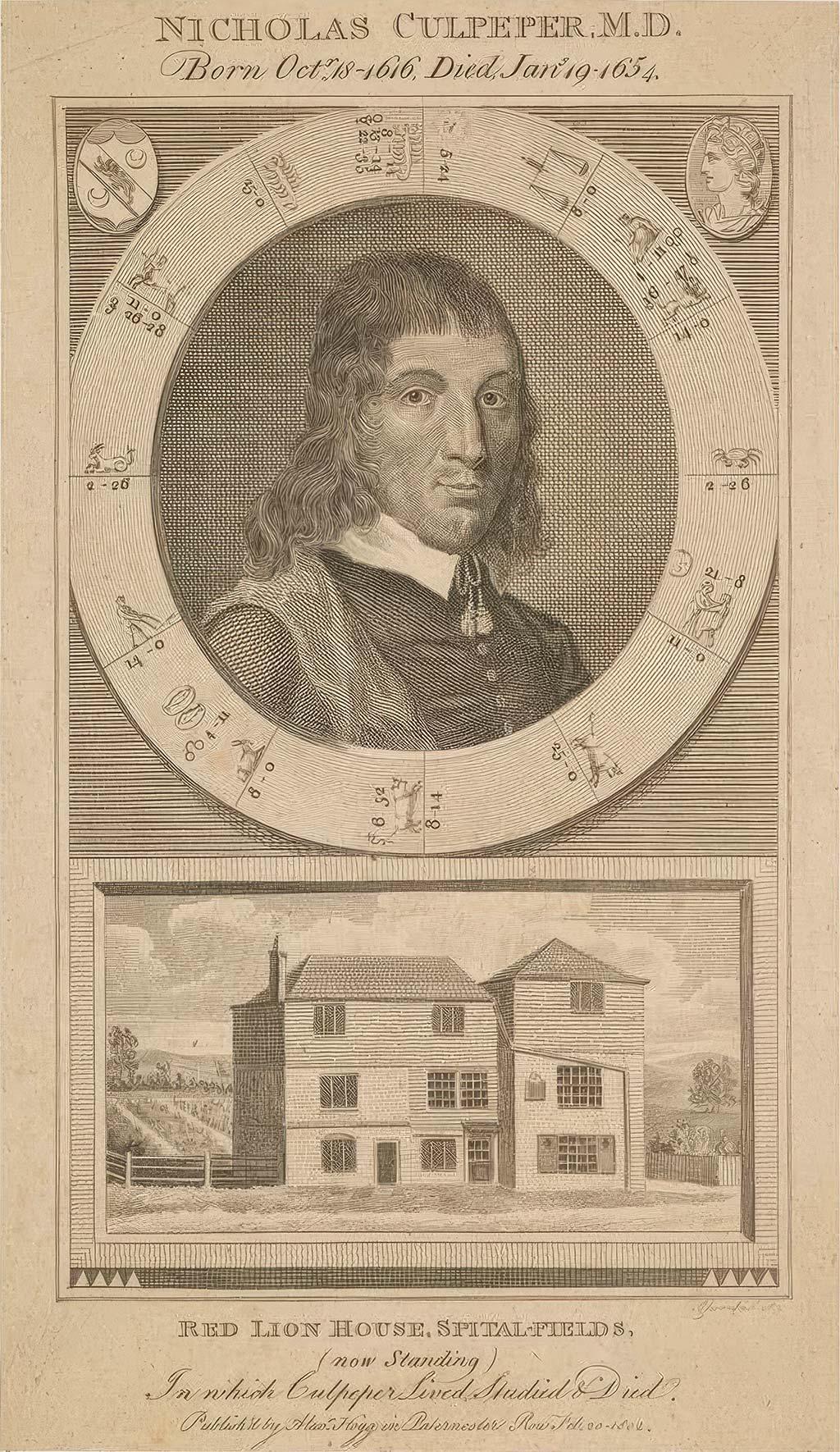 Nicholas Culpeper (1616 – 1654) was a pioneering herbalist and medical practitioner who worked to make medicine more accessible to ordinary people. Raised in the Sussex countryside by his grandfather, a Puritan minister, Culpeper developed a love for nature, astronomy, and healing herbs at an early age.