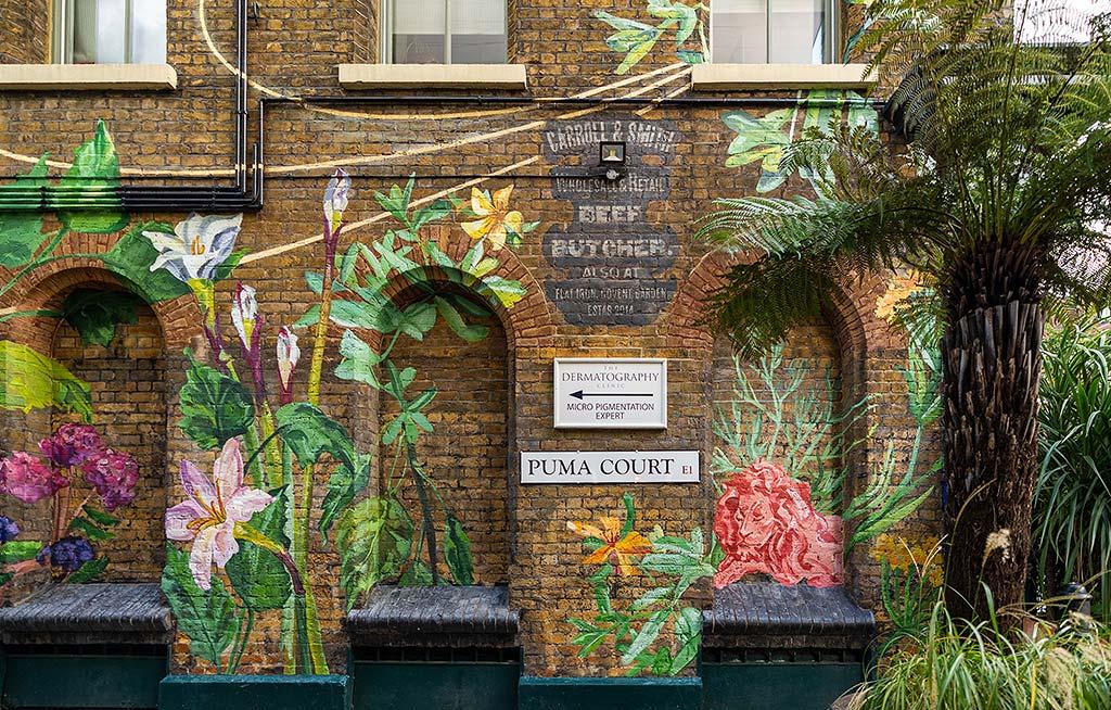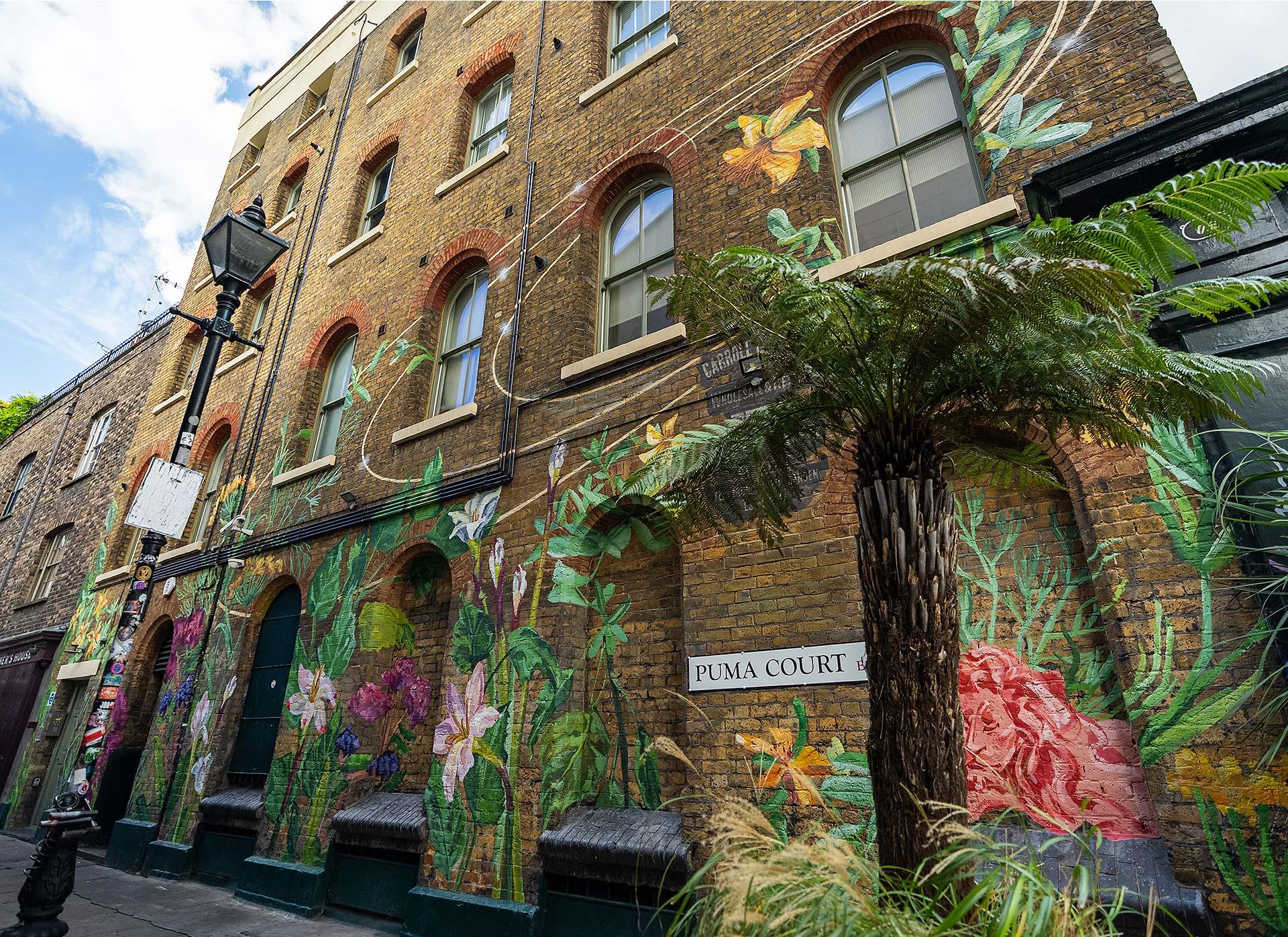 Inspired by Nicholas Culpeper, who lived on the site of Puma Court in the 1600s, the mural is a tribute his revolutionary medical herbalism. We selected Claire Ward-Thornton of Art Hoppers as the perfect artist for this commission, whose work as a scenic mural painter and with an art and mental health charity perfectly aligned with the values of the project.