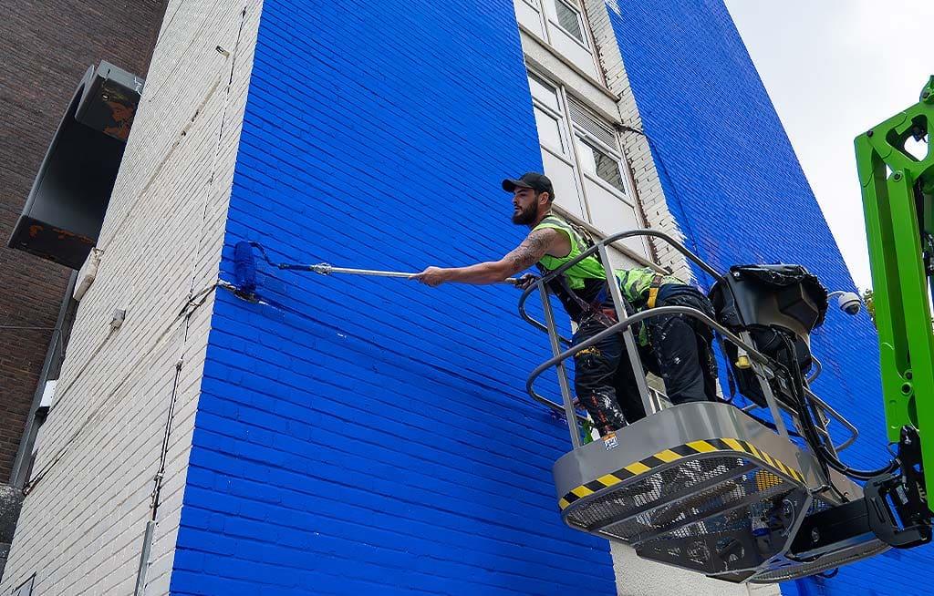 We worked with local resident groups, councils and communities to find eL Seed the perfect wall for his first mural in London for London Mural Festival 2024. The vivid blue even had to be specially sourced from paint partners yescolours.