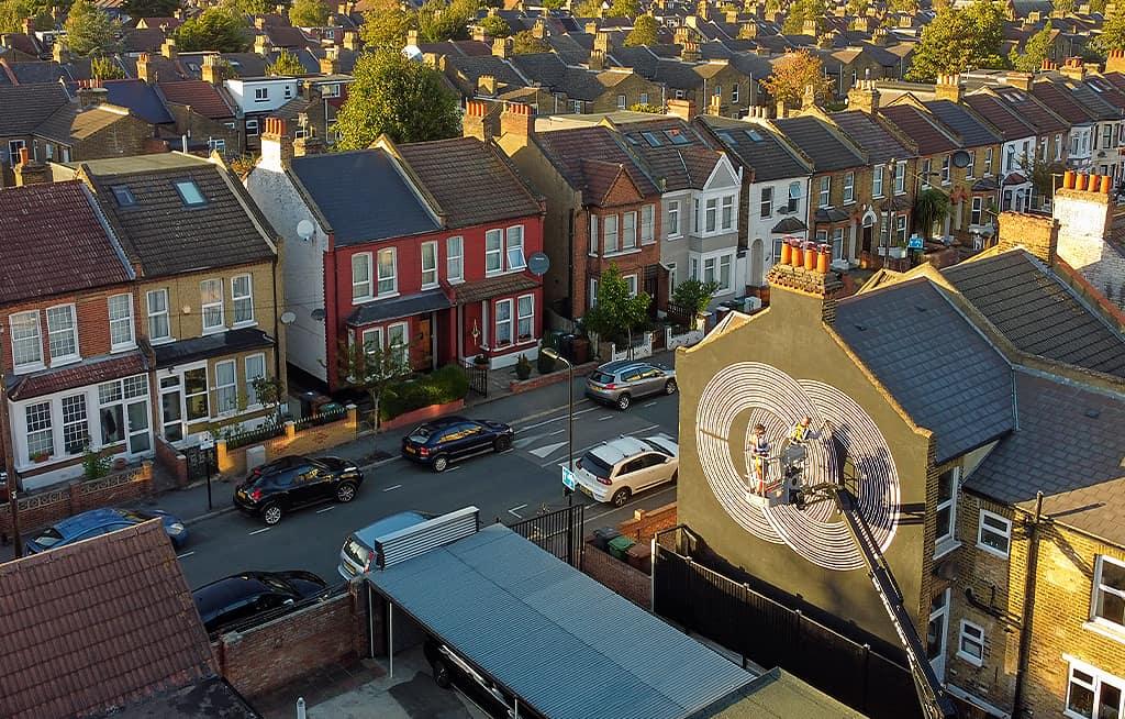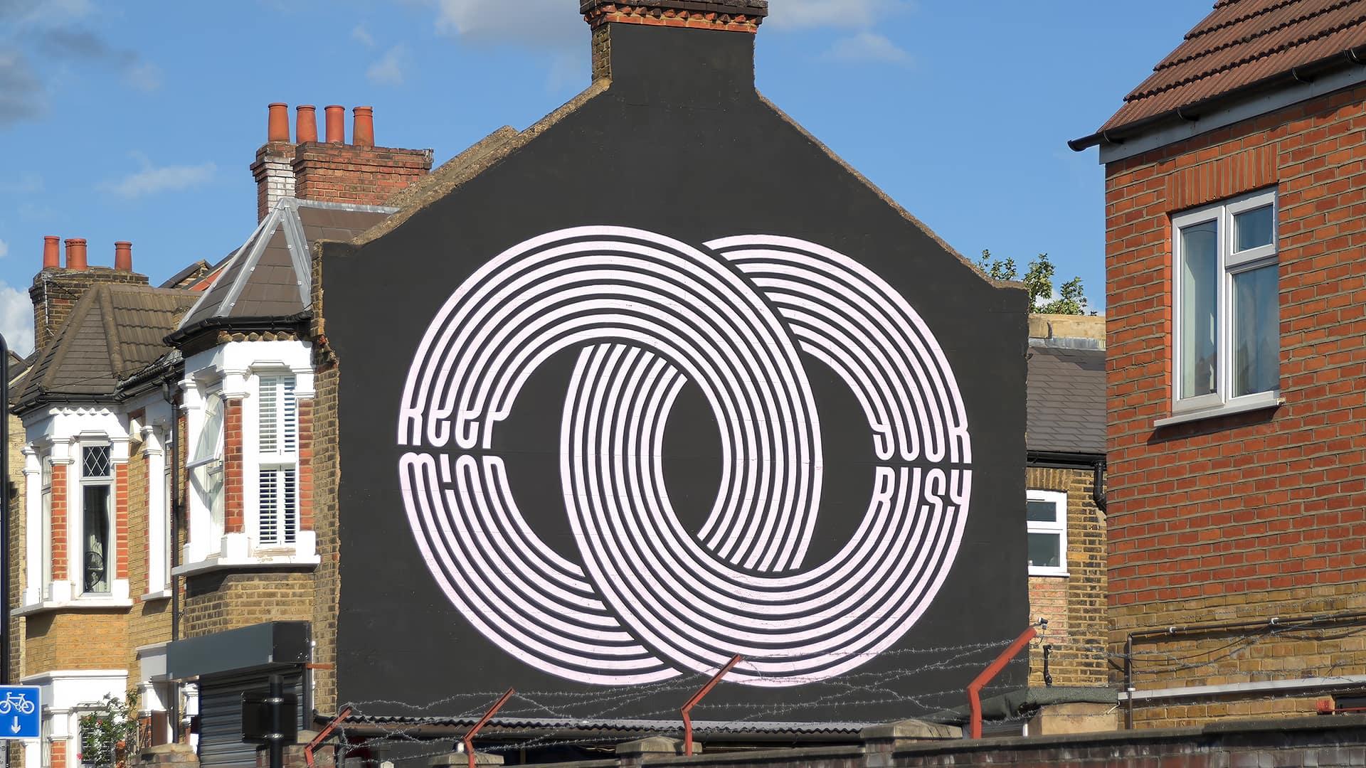 Gary Stranger's 'Keep Your Mind Busy' mural was created for the London Mural Festival in 2020 in response to the COVID-19 pandemic. Through his artwork, Gary offered viewers different interpretations of the phrase: as a question, a statement, an encouragement, or even a therapeutic mantra. His intention was to capture the essence of the times while imbuing the phrase with timeless relevance. The mural, located on Claude Road in Leyton, East London, showcases a fusion of graphics, typography, and clever wordplay – testament to Gary's creative prowess. Completed over three days, this mural remains a vibrant addition to the local landscape.