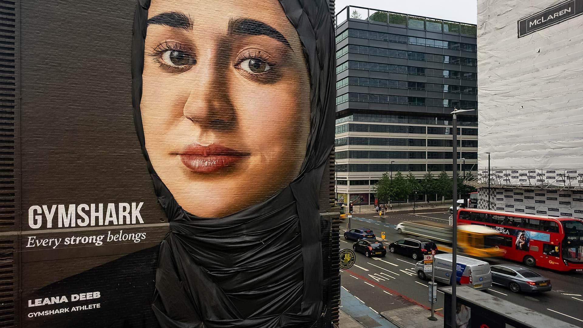 We can also apply signature materials that showcase or mimic the qualities of a product, like the canvas fabric shown here that we used to highlight a sports hijab for Gymshark.